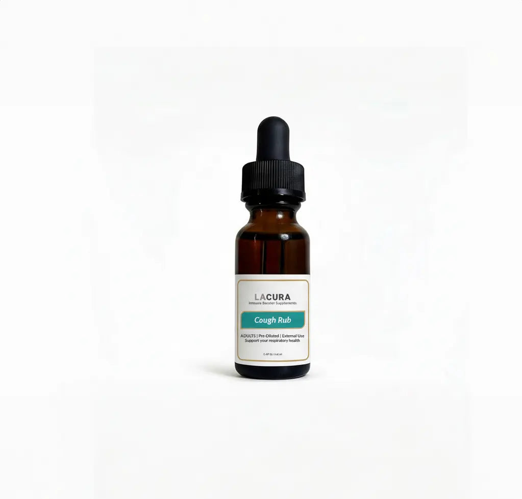LaCura Cough Rub Essential Oil blend is This product contains 6 powerful oils that work together on the respiratory system.